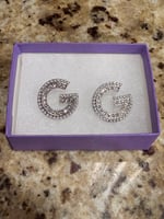 G shaped earrings with Pearls around the side.
